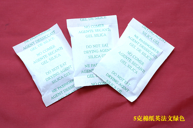 5克棉纸英法文绿色版硅胶干燥剂